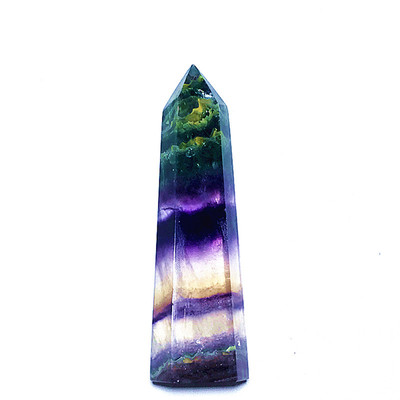 水晶原石系列 天然七彩萤石六棱柱原石摆件单尖水晶柱子能量水晶疗愈石矿物标本 Fhsjp